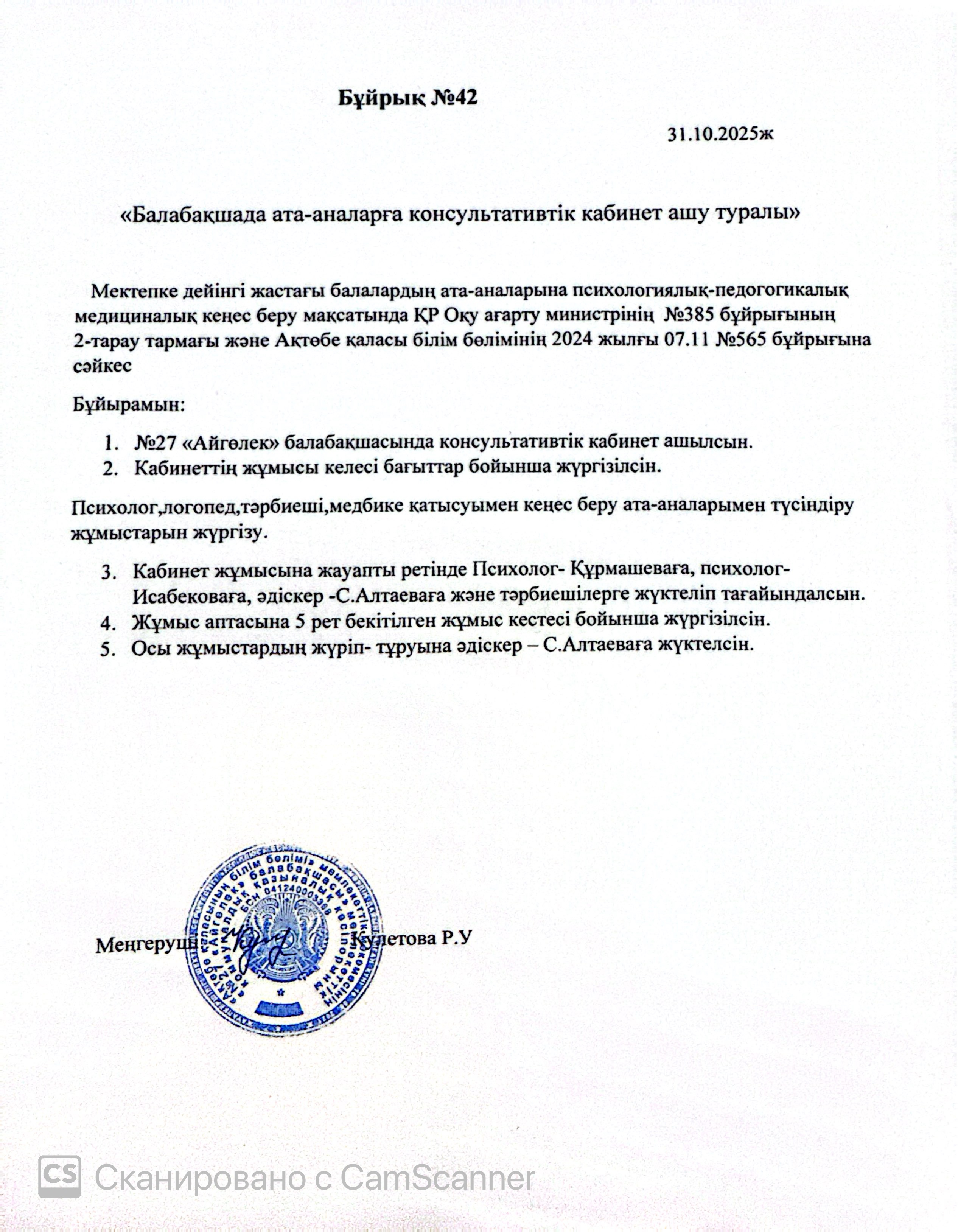 | 1 | Консультативтік пункт бұйрығы 2025 - 2026 | |