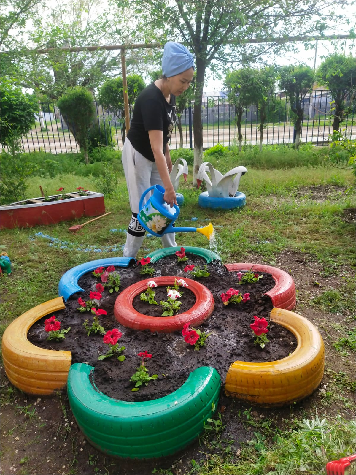 Балалар бақшасында "2022 жыл Балалар жылына" арналған жоспар аясында "Ауламызды гүлдендірейік!" атты қайырымдылық акциясы ұйымдастырылды. Акция барысында ата-аналар балалар бақшасындағы үлескелерде гүлдер отырғызып, жерді қопсытып, айналаны абаттандыруға өз үлестерін қосты.